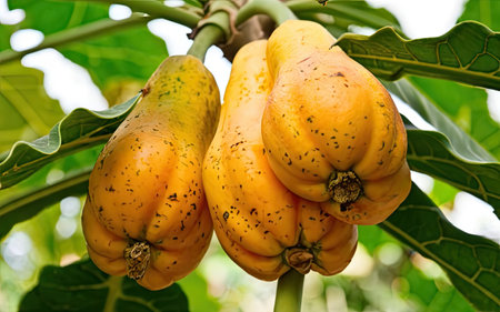 tasty fresh papayas on tree