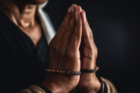 closeup shot of an unrecognizable woman cupping her hands while praying, created with generative ai