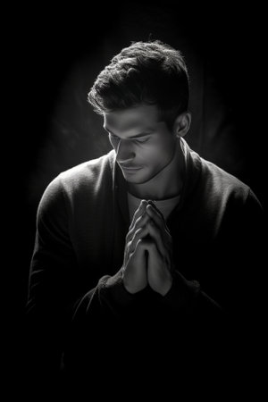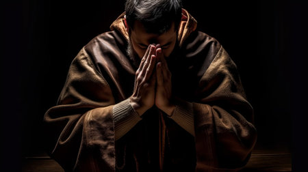 shot of a man in prayer, created with generative ai