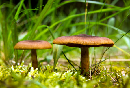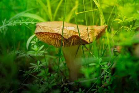 Beautiful mushroom in the grass on a green background, Sfanta Ana, Harghita, Romania