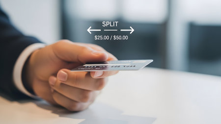 Credit showing close-up hand offering credit card for payment split transaction. resolution...