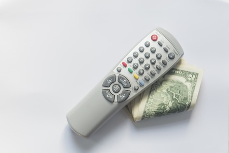 TV Remotes and US dollars on white background. Pay TV or television concept.