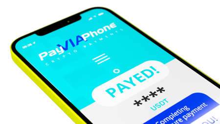 Kharkov, Ukraine - August 12, 2021: Paypal app. Woman using smartphone with paypal application. Brand