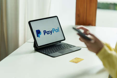CHIANG MAI, THAILAND, OCT 27, 2019 : Using PayPal for online shopping. PayPal is a worldwide online payment system