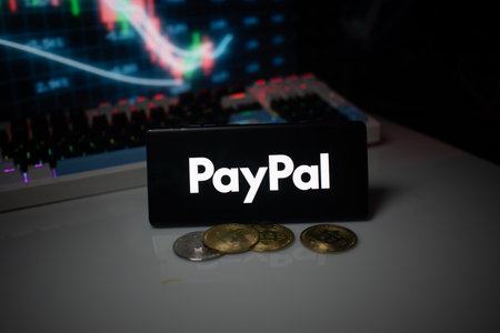 Dhaka, Bangladesh 18 September 2025:PayPal logo shown with coins and illuminated market analysis graph