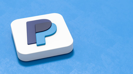 Paypal Logo Icon on Blue Background with Copy space