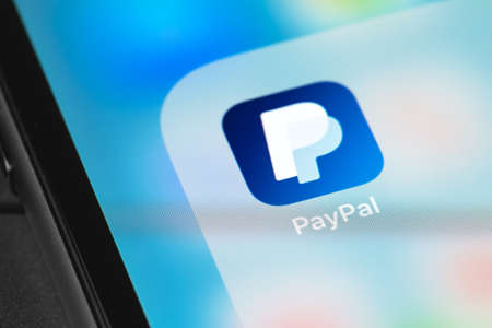 Helsinki, Finland, May 4, 2019: PayPal application icon on Apple iPhone X smartphone screen close-up. PayPal app icon. PayPal is an online electronic finance payment system.