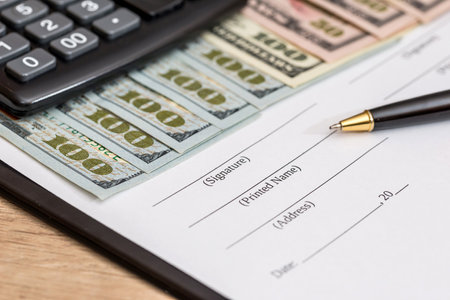 blank contract, pen and us dollar