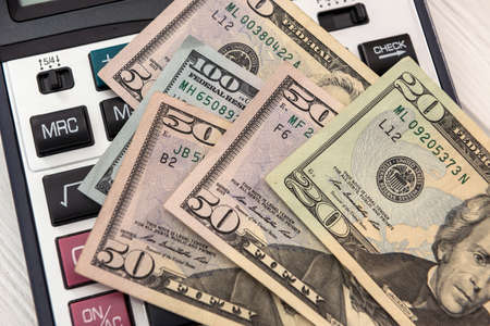 US dollars and calculator. Economic background with place for text or calculations.