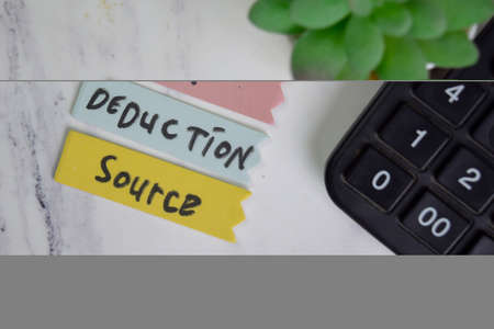 Tax Deduction Source write on sticky notes isolated on Wooden Table.