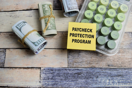Concept of paycheck protection program write on sticky notes isolated on Wooden Table.