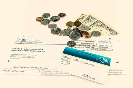 Money, Coins, EBT card, and Letter from NY State Department of Labor