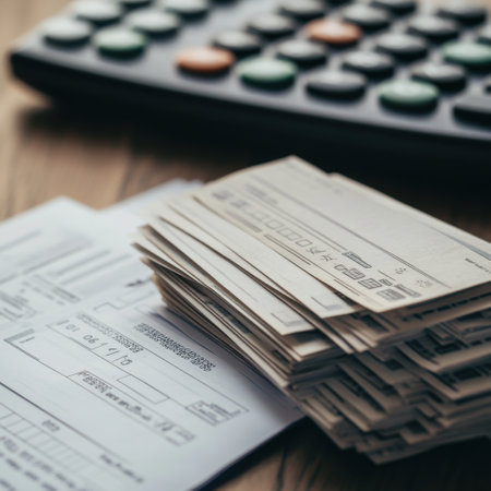 Utility or mortgage bills, calculator and US dollars - finance concept, payments and problems