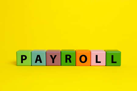 Colorful cubes with word Payroll on yellow background