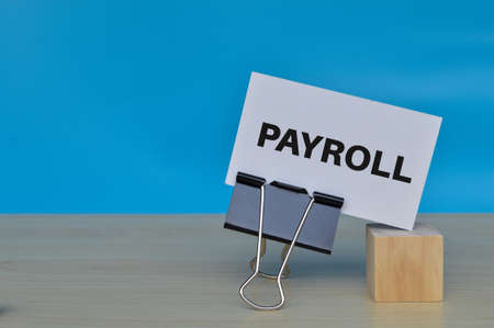 White paper with text PAYROLL isolated on blue background.