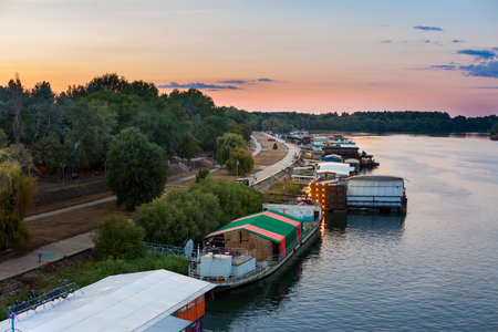 Splav (river barge) night clubs on the Sava, Belgrade, Serbia