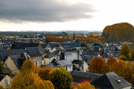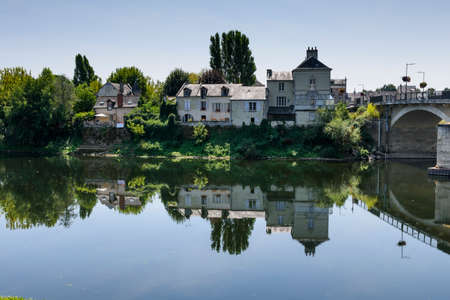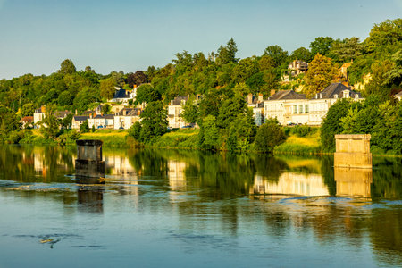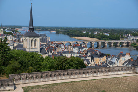 Panorama of the town of Saumur on the banks of the Loire River, in France in the Loire Valley
