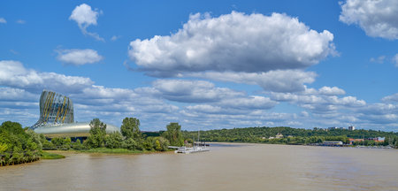Bordeaux, France, view of the futuristic architecture of the Wine City (Citè du Vin) museum and cultural center over the Garonne river