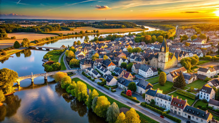 Aerial View of Beaugency, Loiret, France: Charming Village & Loire Valley Landscape