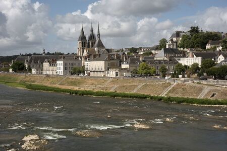 Blois France - August 2016 - The Chateau Royal and the Church of Saint Nicholas overlook the River Loire at Blois France
