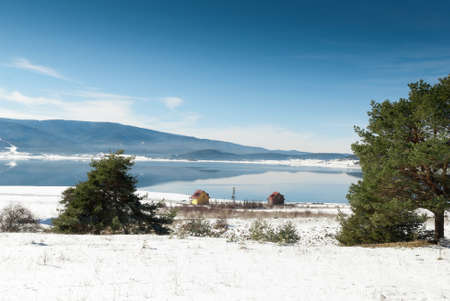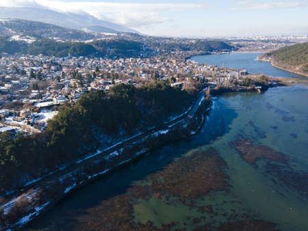 Aerial winter view of Pancharevo lake, Sofia city Region, Bulgaria