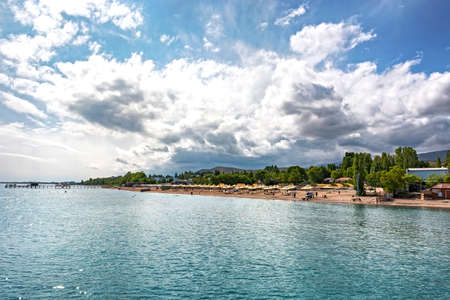 Sunny summer day on the lake. Kyrgyzstan, Lake Issyk-Kul
