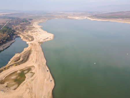 Aerial view of Pyasachnik (Sandstone) Reservoir, Sredna Gora Mountain, Plovdiv Region, Bulgaria
