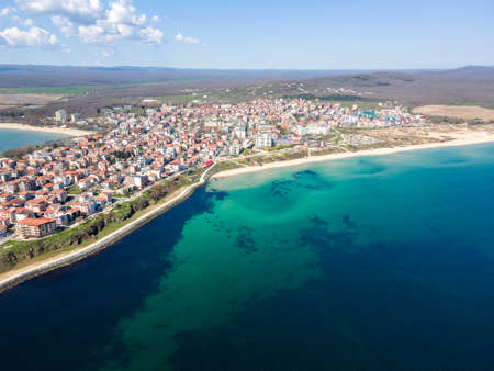 Amazing Aerial view of town of Primorsko, Burgas Region, Bulgaria