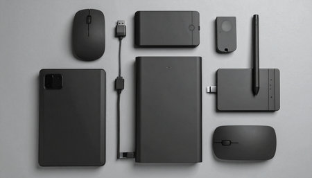 A curated collection of essential black tech gadgets for the modern creative professional.