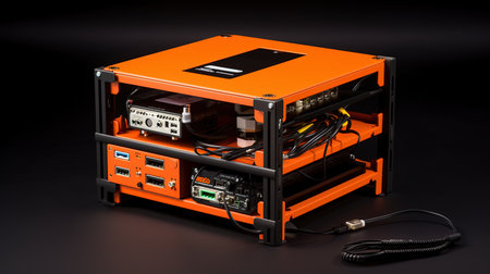 This digital image showcases a small yet powerful security server designed with exacting precision and multi-layered security features. With USB and network ports, this server is perfect for businesses and individuals looking for top-of-the-line security. The image is rendered in stunning 8K resolution and features LED lighting for added visual impact