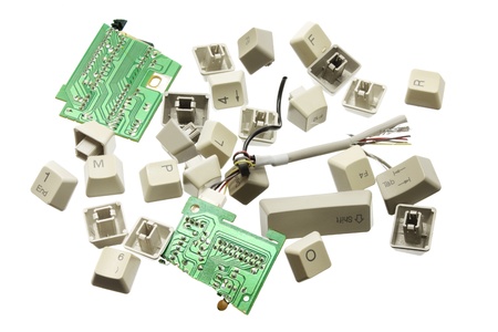 Broken Computer Keys on White Background