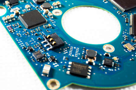Close-up of electronic circuit board. Technology background. Selective focus.