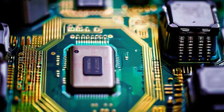 Chip on the integrated circuit board, created with generative AI
