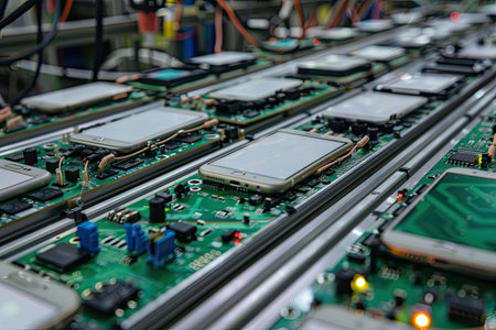 Mobile Phones on High-Tech Assembly Line in Electronics Factory