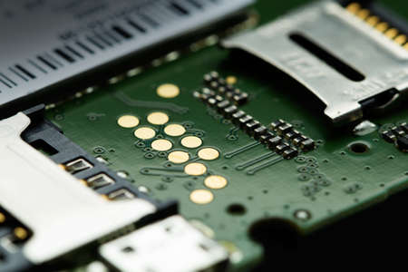 Disassembled digital device close-up macro shot, selective focus