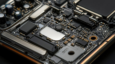 Explore a detailed view of a smartphone circuit board showcasing intricate components and advanced technology that powers modern devices.