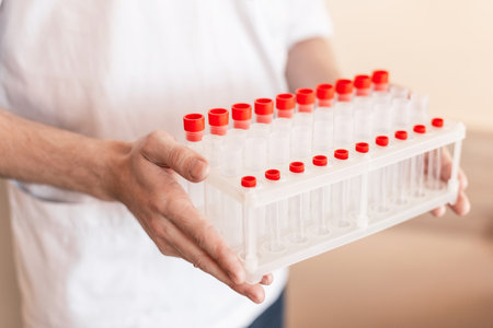 Several blood samples are being analyzed by a scientist in a laboratory