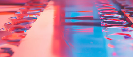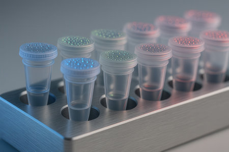 Close-up of PCR reactor hotplate with array of test tubes containing sampled DNA for polymerase chain reaction