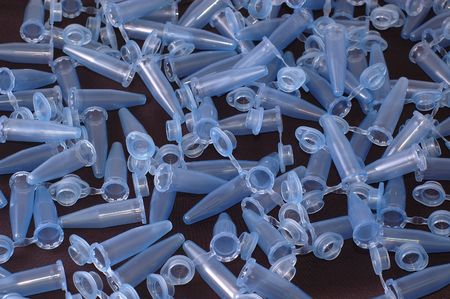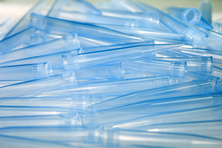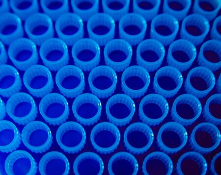 Batch of laboratory plastic test tubes at lab.