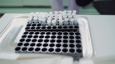 Well plate with test tubes with samples for analysis.