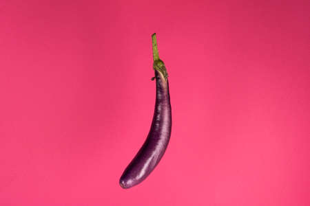 Eggplant on a purple background, fresh juicy vegetable on a colored background, selective focus, soft focus