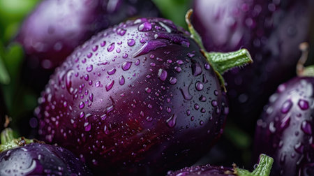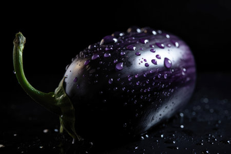 Purple Eggplant With Drops On Black Gradient Background Panoramic Banner