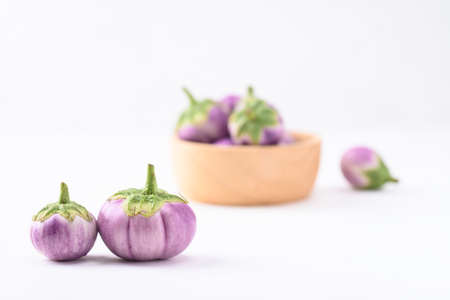 Fresh organic Thai purple eggplant on white background, Food ingredient