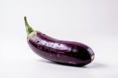 An AI generated illustration of a single purple eggplant isolated on a white background