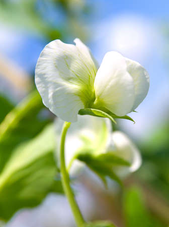 Organic green pea blooming in nature. Close-up.