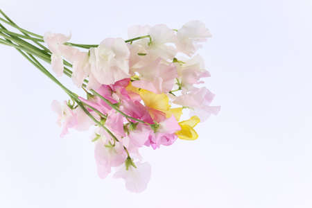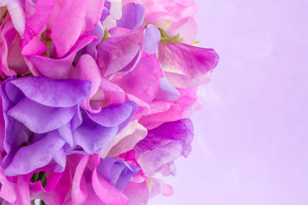 beautiful sweet peas flowers on pink background