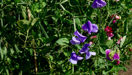 Various pea flowers growing in the spring garden.