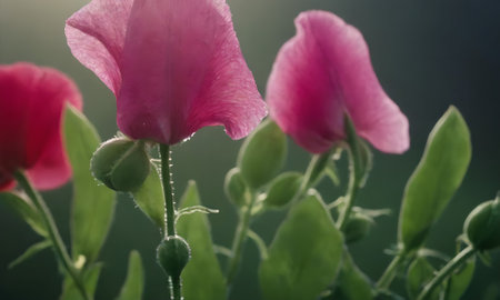 This elegant image features a captivating arrangement of pink sweet pea flowers, highlighting their delicate petals and rich colors against a soft background.