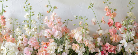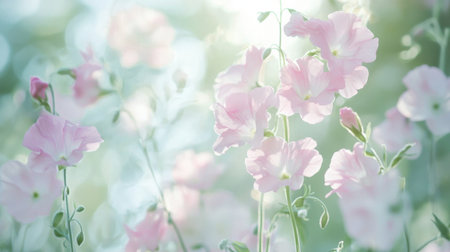 A breathtaking display of sweet pea flowers in soft pastel hues. Their delicate petals capture the essence of spring, evoking feelings of tranquility and joy.