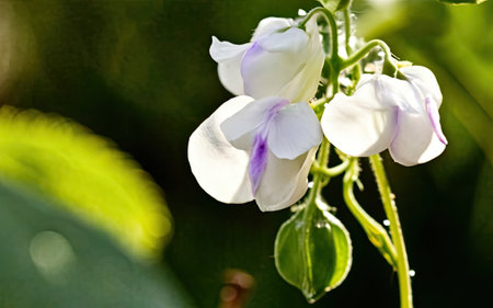 White and purple flowers of sweet pea (Sesbania speciosa)